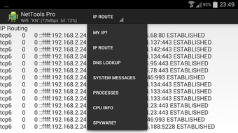 NetTools è un'applicazione gratuita per Android che fornisce informazioni dettagliate sul tuo dispositivo e sulla rete. Tra le sue principali funzionalità, offre la possibilità di visualizzare le impostazioni di rete, l'indirizzo IP reale, l'IP routing e informazioni sul processore e sull'hardware. Inoltre, mostra i processi in esecuzione, anche se l'elenco completo dipende dalla versione di Android in uso, poiché le autorizzazioni di visualizzazione diminuiscono con le versioni più recenti.